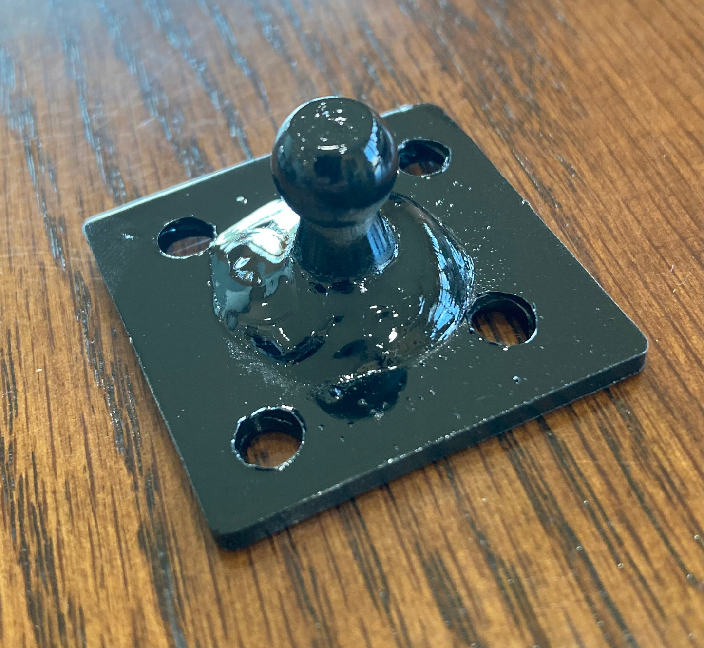 The Standard Ball Stud with plate is the standard 10MM ball stud welded into a small steel plate, then painted black. This can be riveted on to the top of the steel saddle rack post so that no welding will be necessary to replace the ball stud.